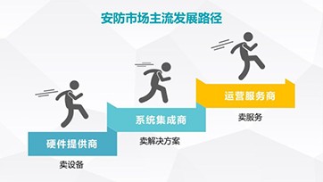 對(duì)比國外市場,我國安防運(yùn)營服務(wù)規(guī)模占比顯著偏低,將成為廠商未來布局的重點(diǎn)。因此要加快運(yùn)營服務(wù)市場發(fā)展步伐。安防運(yùn)營服務(wù)是安防產(chǎn)業(yè)的重中之重,是全球安防產(chǎn)業(yè)未來發(fā)展的趨勢。在技術(shù)升級(jí)、產(chǎn)品同質(zhì)化和成本的降低的背景下,產(chǎn)品市場的利潤空間逐漸被壓縮,從硬件提供商(賣設(shè)備)——系統(tǒng)集成商(賣解決方案)——運(yùn)營服務(wù)商(賣服務(wù))已成為主流發(fā)展路徑。