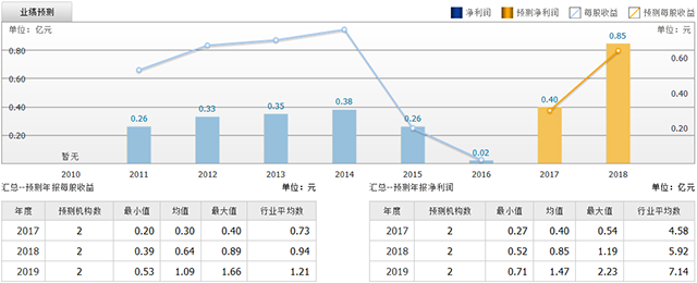 截至2017年7月17日,6個月以內(nèi)共有 2 家機構對博濟醫(yī)藥的2017年度業(yè)績作出預測;預測2017年每股收益 0.30 元,較去年同比增長 1810.83%,預測2017年凈利潤 0.40 億元,較去年同比增長 1832.84%。