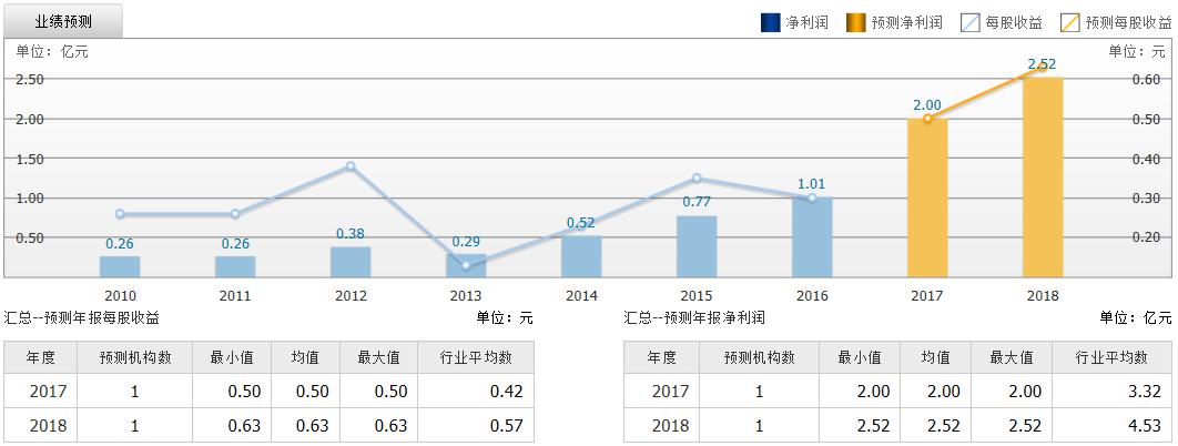 截至2017年8月3日,6個月以內共有 1 家機構對賽為智能的2017年度業(yè)績作出預測。預測2017年每股收益 0.50 元,較去年同比增長 66.67%;預測2017年凈利潤 2.00 億元,較去年同比增長 98.57%。