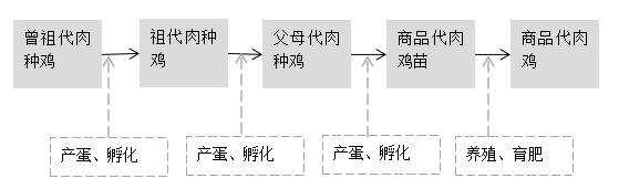 我國白羽肉雞祖代種雞養(yǎng)殖企業(yè)主要從國外引進祖代肉種雞苗,繁育父母代肉種雞苗出售給父母代肉種雞養(yǎng)殖企業(yè),父母代肉種雞產(chǎn)蛋孵化出商品代雛雞銷售給代養(yǎng)戶,商品代肉雞經(jīng)屠宰加工后成為雞肉產(chǎn)品。白羽肉雞的目標(biāo)客戶主要是肯德基、麥當(dāng)勞等快餐消費及分割產(chǎn)品出口。