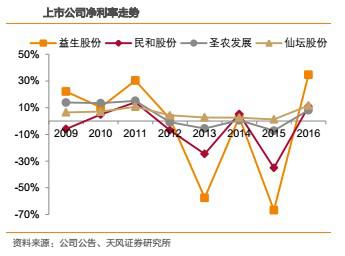 受產(chǎn)品價格彈性影響,越靠近上游,盈利能力的波動越大。財務(wù)指標(biāo)上,毛利率、凈利率的波動,益生股份>民和股份>圣農(nóng)發(fā)展>仙壇股份。