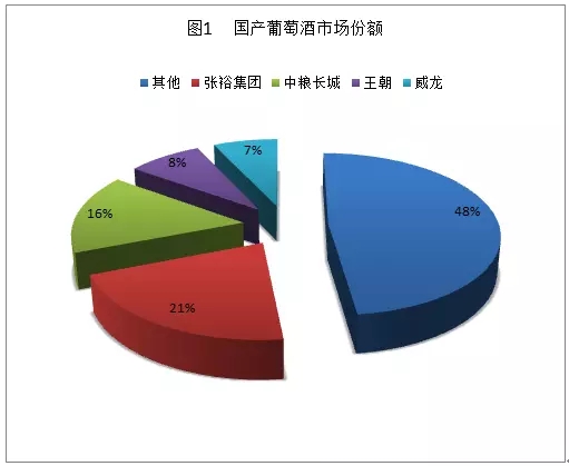 2000年開始,伴隨著新一輪消費(fèi)升級大潮的來臨,葡萄酒行業(yè)進(jìn)入快速發(fā)展期。近年來,隨著消費(fèi)者對葡萄酒的認(rèn)知出現(xiàn)變化,居民的消費(fèi)能力也出現(xiàn)上升,葡萄酒市場出現(xiàn)良好的發(fā)展勢頭,國內(nèi)一批葡萄酒企業(yè)紛紛打響了自己的品牌。目前,在我國的500多家葡萄酒企業(yè)中,已經(jīng)形成了以張?jiān)?、王朝、長城等為龍頭的一線葡萄酒品牌。幾大品牌占據(jù)了國內(nèi)葡萄酒市場的大部分份額,集中度進(jìn)一步增大。其中,張?jiān)?、長城、王朝的葡萄酒產(chǎn)量,占全國葡萄酒總產(chǎn)量的50%左右(圖1)。同時張?jiān)?、長城和王朝的銷量占50%的市場份額。利潤總額更是占到行業(yè)的67%。王朝、張?jiān)?、長城三家國產(chǎn)品牌通過超市等多渠道的擴(kuò)張,已在國內(nèi)消費(fèi)者心目中占據(jù)重要的位置。