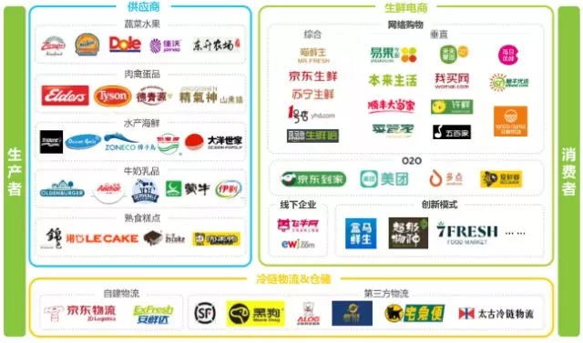 2017年中國(guó)生鮮電商產(chǎn)業(yè)鏈圖譜