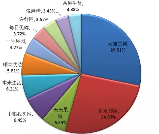國(guó)內(nèi)生鮮電商市場(chǎng)份額分布