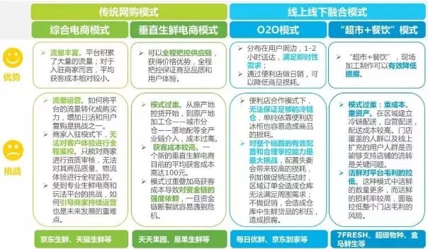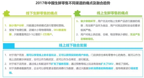 線上線下融合成生鮮電商發(fā)展重要趨勢(shì);圍繞零售核心,優(yōu)勢(shì)痛點(diǎn)互補(bǔ);各種渠道的融合是發(fā)展的必然趨勢(shì)。