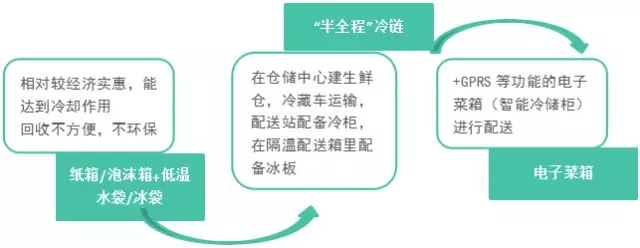 目前國(guó)內(nèi)有三種冷鏈配送方式,占比最大的是第一種。相比國(guó)外的冷鏈配送,中國(guó)冷鏈配送還不夠完善,也非真正的全程冷鏈,容易造成生鮮的損耗高的問題,用戶體驗(yàn)差,冷鏈配送未來?yè)碛休^大完善空間。
