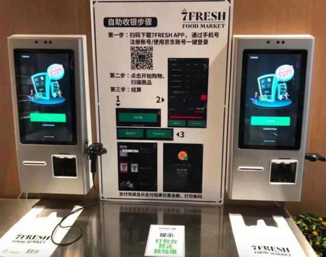 選購(gòu)?fù)戤?,消費(fèi)者可在7fresh店內(nèi)實(shí)現(xiàn)自助結(jié)賬。具體操作如上圖所示,掃碼下載7fresh APP,通過手機(jī)號(hào)注冊(cè)賬號(hào),點(diǎn)擊開始購(gòu)物,掃描商品,進(jìn)行結(jié)算。但對(duì)于此全用戶手動(dòng)操作的過程,如果顧客有意遺漏幾件商品的掃描與付費(fèi)呢?對(duì)于此問題,京東方面回應(yīng)稱“7fresh 是面向高素質(zhì)消費(fèi)群體的生鮮超市”。