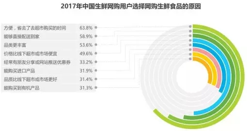 方便是用戶網(wǎng)購(gòu)生鮮食品的主要原因,能夠直接配送到家、品類豐富對(duì)用戶有較大的吸引力。