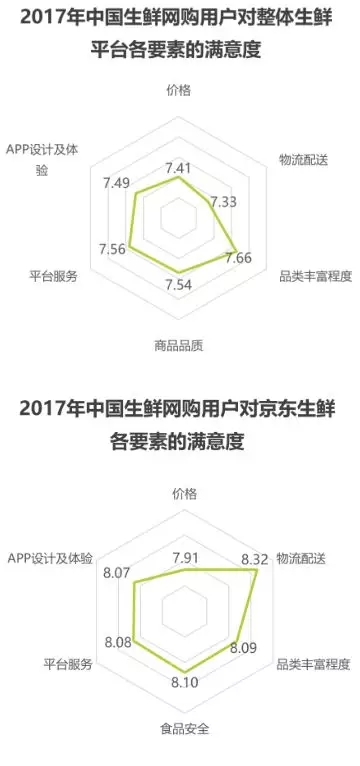 ? 用戶對(duì)生鮮網(wǎng)購(gòu)整體滿意度較高;京東生鮮各維度滿意度均高于行業(yè)整體,物流配送方面優(yōu)勢(shì)明顯。