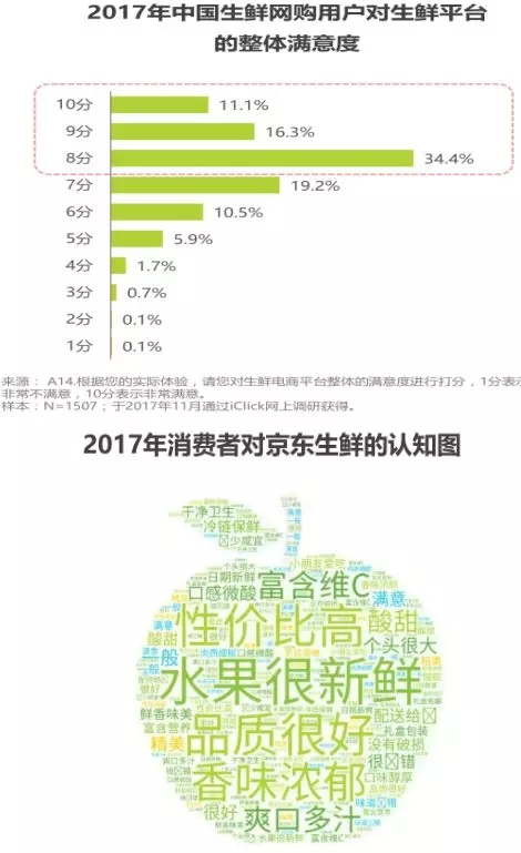 生鮮網(wǎng)購(gòu)用戶對(duì)品類豐富度最滿意,京東生鮮滿意度均高于行業(yè)整體,物流配送優(yōu)勢(shì)明顯。