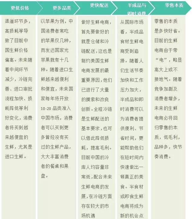 ? 一方面,一大批中小型生鮮電商企業(yè)或倒閉或被并購(gòu);另一方面,巨頭入局,不斷加碼冷鏈物流和生鮮供應(yīng)鏈投資,擁有全產(chǎn)業(yè)鏈資源和全渠道資源的企業(yè)將愈發(fā)具有優(yōu)勢(shì)。