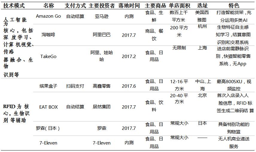 ? 無人店類似于小超市或者便利店,主要是2016年12月之后開始迅速爆發(fā),雖然之前也有企業(yè)開始耕耘無人零售,但市場的火熱以國外的Amazon Go 和國內(nèi)的淘咖啡為起點(diǎn)和引爆點(diǎn),巨頭的行動帶動了整體市場的快速推進(jìn)。