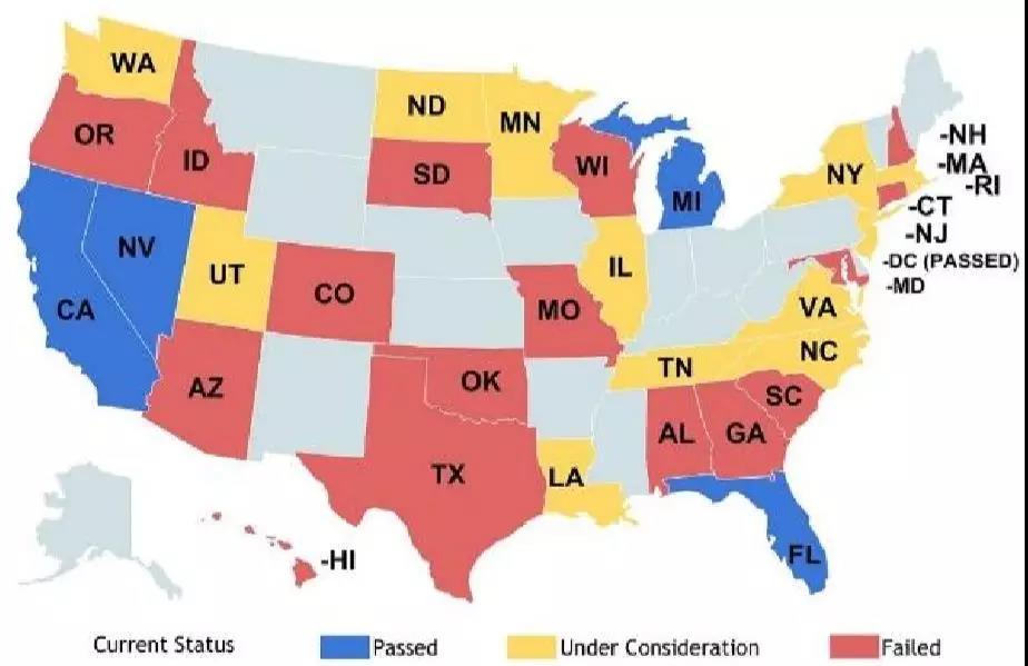 隨著無人駕駛技術(shù)的不斷發(fā)展演進(jìn),對無人駕駛的立法變得十分重要。截至2015年,美國已經(jīng)有16個州啟動無人駕駛立法;截至2014 年是12個州,截至2013年是9個州,截至2012年是6個州。Nevada 在2011年授權(quán)無人駕駛車的運營,是全美第一個授權(quán)無人駕駛的州。之后,California,F(xiàn)lorida,Michigan,North Dakota,Tennessee和 Washington D.C 針對無人駕駛通過了相關(guān)的法案。Arizona州長簽署了無人駕駛的行政命令。