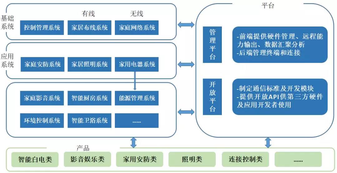 智能家居平臺(tái)的概念與Facebook、蘋(píng)果App應(yīng)用商店類似,智能家居平臺(tái)商制定通信標(biāo)準(zhǔn)及開(kāi)發(fā)模塊等,然后提供開(kāi)放API(應(yīng)用程序編程接口)供第三方硬件及應(yīng)用開(kāi)發(fā)者使用,所有的硬件及應(yīng)用產(chǎn)品就可以無(wú)縫連接至平臺(tái)操作系統(tǒng),進(jìn)而平臺(tái)商、第三方硬件及應(yīng)用開(kāi)發(fā)者、用戶構(gòu)成一個(gè)全新的智能家居平臺(tái)生態(tài)鏈。目前國(guó)內(nèi)市場(chǎng)上活躍度比較高的有青島海爾家居集成股份有限公司、全智慧科技(北京)有限公司、美的集團(tuán)股份有限公司(公開(kāi)A股)、小米科技有限責(zé)任公司、深圳市電陶思創(chuàng)科技有限公司、北京京東世紀(jì)貿(mào)易有限公司、北京百度網(wǎng)訊科技有限公司、阿里巴巴(中國(guó))有限公司等8家企業(yè)。