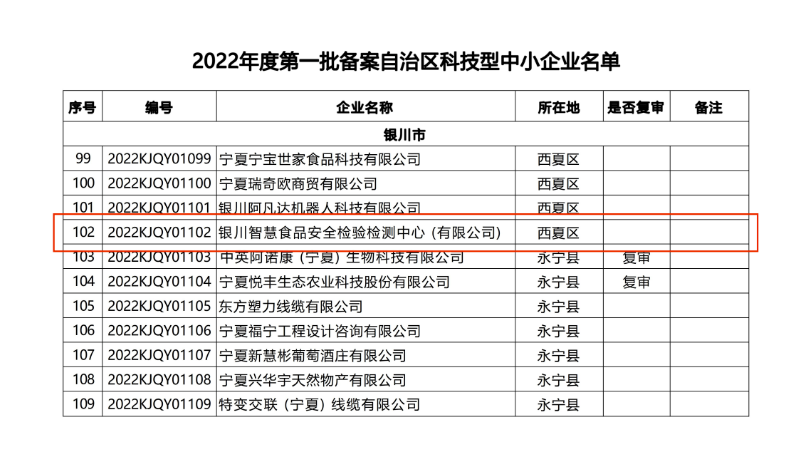 銀川智慧食品安全檢驗檢測中心(有限公司)榮獲自治區(qū)科技型中小企業(yè)稱號