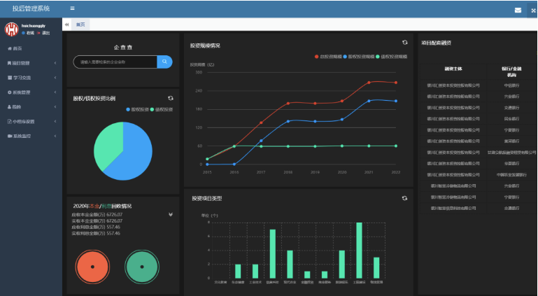 為進一步全面推進集團公司國企改革三年行動工作落實落地,積極探索公司數字化轉型新路徑,推動數字經濟與風險防控深度融合,著力提升公司合規(guī)風控及投后管理的標準化、規(guī)范化、信息化水平,銀川智慧信息科技有限公司根據集團公司關于國企改革、數字化轉型和高質量發(fā)展的整體工作部署,打造了投后管理系統平臺,目前,已正式投入使用。平臺旨在通過投后管理系統平臺進行良好的投后管理,為化解風險提供精準有效的數據支撐,減少或消除潛在投資風險,保障國有投資安全,實現國有資產的保值增值。